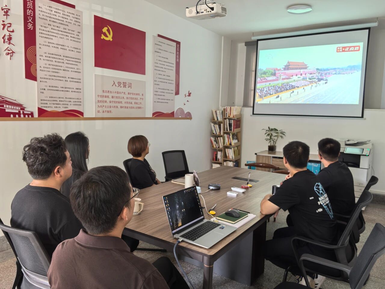 三名年輕同志結(jié)合個(gè)人實(shí)際分享觀禮感悟:楊紫廷同志談道,鐵血榮光是由革命先烈用鮮血與生命鑄就,在侵華日軍南京大屠殺遇難同胞紀(jì)念館,“不為復(fù)仇誓言銘記南京歷史遺訓(xùn),為了大愛(ài)志愿謀求世界和平永續(xù)”的標(biāo)語(yǔ),與閱兵傳遞的“三個(gè)必勝”信念一脈相承,更讓她深知和平之珍貴;段國(guó)興同志分享了自己的“軍人夢(mèng)”,雖未能如愿穿上軍裝,但閱兵中大國(guó)重器的亮相、徒步方陣鏗鏘的步伐,都讓他真切感受到“鋼鐵長(zhǎng)城已鑄就”的安心,他將把這份震撼轉(zhuǎn)化為動(dòng)力,立足崗位,為“三農(nóng)”事業(yè)添磚加瓦;董定臣同志感慨,新中國(guó)成立70周年時(shí)曾與幼子一同觀看閱兵,孩子一連串的提問(wèn)與一句“祖國(guó)好厲害”讓他記憶猶新,歷經(jīng)新冠疫情、芯片制裁等挑戰(zhàn)后再看閱兵,國(guó)家軍工與經(jīng)濟(jì)的突破更顯來(lái)之不易,他將以務(wù)實(shí)態(tài)度優(yōu)化服務(wù),以崗位行動(dòng)守護(hù)盛世。