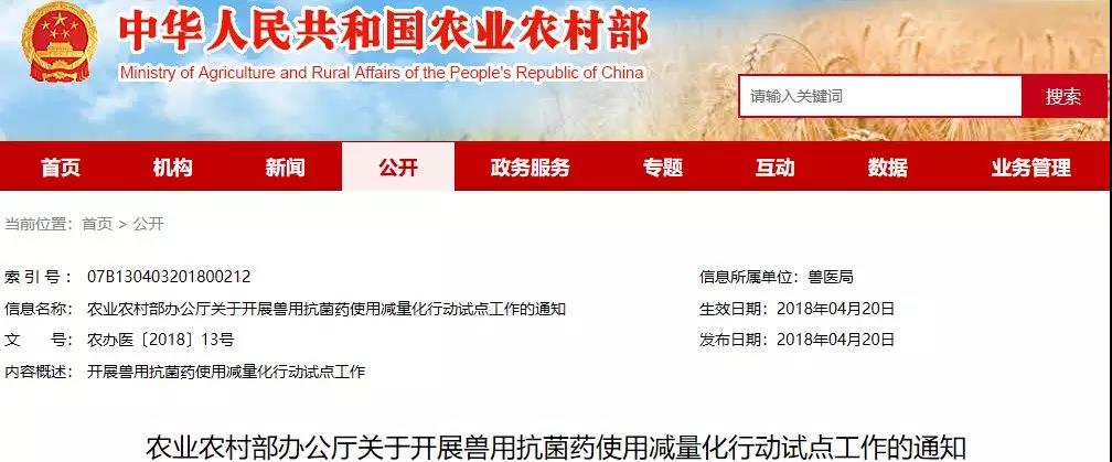 另外,農(nóng)業(yè)農(nóng)村部在近期發(fā)布了《農(nóng)業(yè)農(nóng)村部辦公廳關(guān)于開展獸用抗菌藥使用減量化行動(dòng)試點(diǎn)工作的通知》。農(nóng)業(yè)農(nóng)村部決定開展獸用抗菌藥使用減量化行動(dòng),組織制定了《獸用抗菌藥使用減量化行動(dòng)試點(diǎn)工作方案(2018—2021年)》(以下簡(jiǎn)稱“方案”),確定了各地2018年獸用抗菌藥使用減量化行動(dòng)試點(diǎn)養(yǎng)殖場(chǎng)數(shù)量。