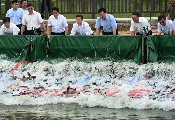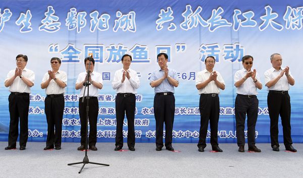 6月7日,作為“全國(guó)放魚(yú)日”主會(huì)場(chǎng)活動(dòng),農(nóng)業(yè)農(nóng)村部會(huì)同江西省人民政府在“長(zhǎng)江之腎”鄱陽(yáng)湖聯(lián)合舉辦水生生物增殖放流活動(dòng),農(nóng)業(yè)農(nóng)村部部長(zhǎng)韓長(zhǎng)賦,江西省委書(shū)記、省長(zhǎng)劉奇等出席活動(dòng)?;顒?dòng)期間,共向鄱陽(yáng)湖放流四大家魚(yú)、河蟹和胭脂魚(yú)等水生生物苗種230余萬(wàn)尾,還首次采用無(wú)線(xiàn)電遙測(cè)技術(shù),對(duì)鄱陽(yáng)湖長(zhǎng)江江豚的晝夜活動(dòng)規(guī)律開(kāi)展研究,為更好地保護(hù)和拯救長(zhǎng)江江豚提供科學(xué)支撐。