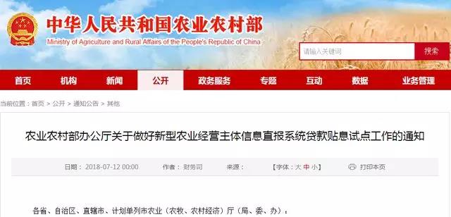 為加快推進新型農(nóng)業(yè)經(jīng)營主體信息直報系統(tǒng)(以下簡稱直報系統(tǒng))應用實施,幫助緩解新型農(nóng)業(yè)經(jīng)營主體貸款難、貸款貴問題,我部將以直報系統(tǒng)為載體開展貸款貼息試點。現(xiàn)將有關事宜通知如下。