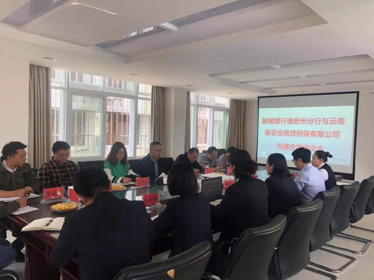 2019年2月19日下午,農(nóng)擔(dān)公司副總經(jīng)理廖寅皓、風(fēng)控部負(fù)責(zé)人張長浩、農(nóng)擔(dān)二部負(fù)責(zé)人賈萬文、機(jī)構(gòu)合作部負(fù)責(zé)人蔡菲帶領(lǐng)德宏辦事處人員至郵儲銀行德宏州分行,與郵儲銀行德宏州分行副行長鄭素霞,小企業(yè)金融部總經(jīng)理劉娜,個(gè)貸部總經(jīng)理吳剛林進(jìn)行交流座談。