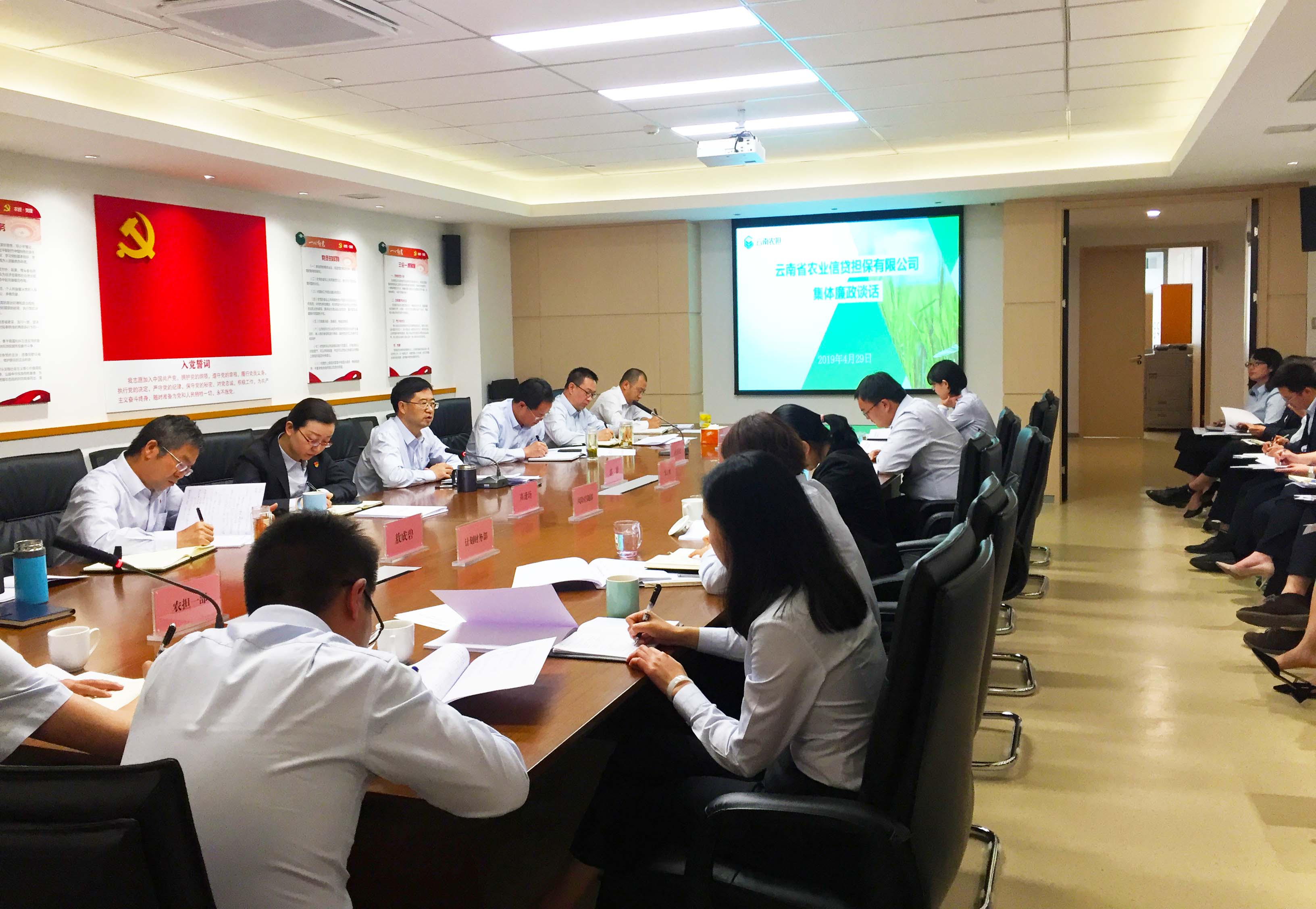 4月29日,云南省農(nóng)業(yè)信貸擔(dān)保有限公司利用召開春季業(yè)務(wù)推進會之機,開展了集體廉政談話。公司黨支部書記、董事長郭影同志向參會的公司領(lǐng)導(dǎo)、各部門及各分支機構(gòu)負責(zé)人、業(yè)務(wù)主管等進行了集體廉政談話。