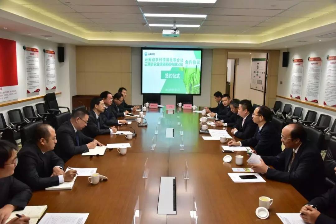 省農(nóng)信社副主任馬寧輝、李梅,省農(nóng)擔(dān)公司總經(jīng)理杜開波、副總經(jīng)理廖寅皓及雙方各有關(guān)部門負(fù)責(zé)同志參加了簽約儀式。此項(xiàng)儀式的成功舉行,標(biāo)志著云南省最大的農(nóng)業(yè)信貸機(jī)構(gòu)與擔(dān)保機(jī)構(gòu)間強(qiáng)強(qiáng)合作,支持“三農(nóng)”發(fā)展、助力鄉(xiāng)村振興步入新階段,邁上新臺階。
