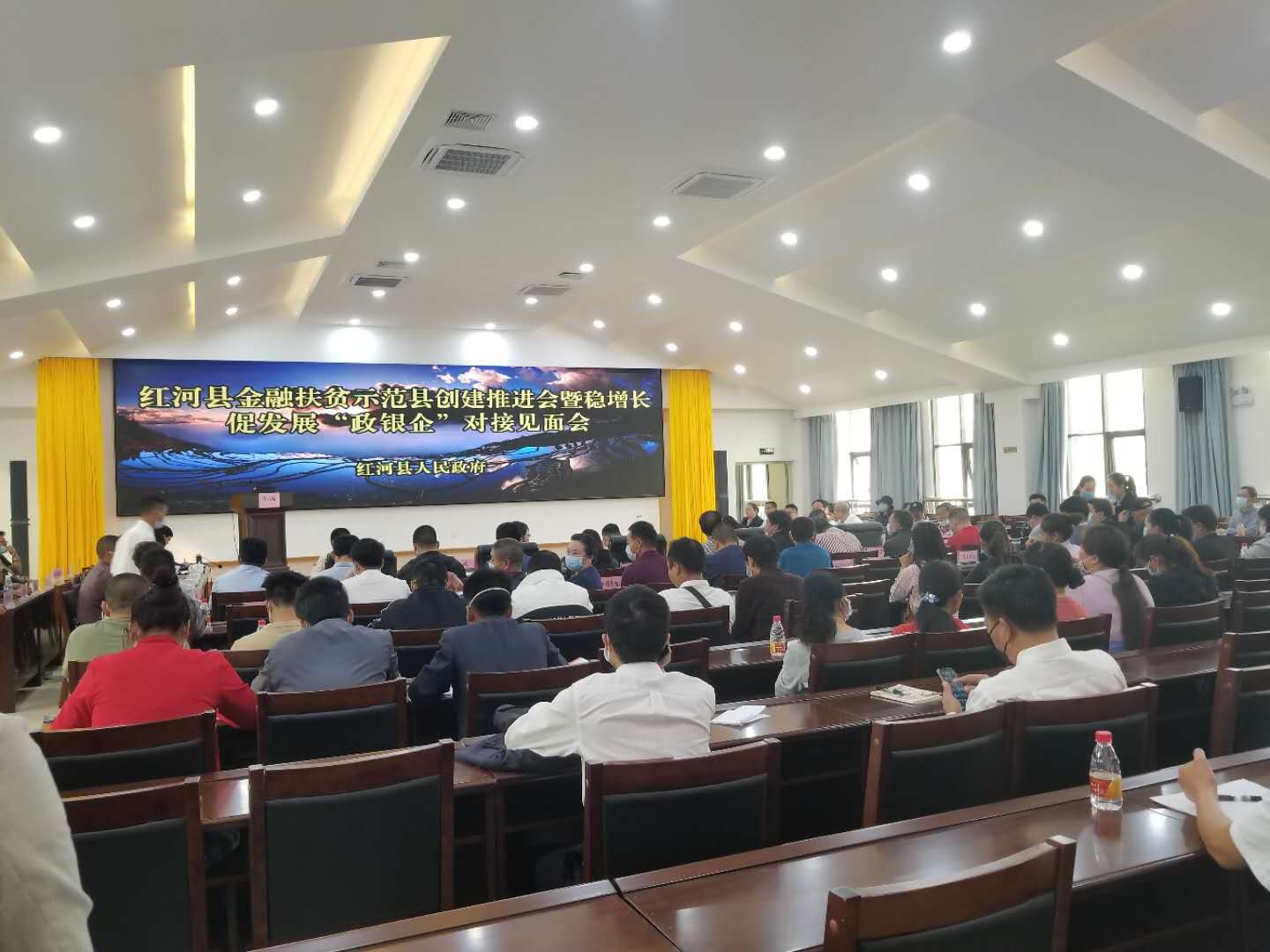 2020年3月11日,紅河辦事處業(yè)務(wù)主管姚燕同志攜項(xiàng)目經(jīng)理范純、周金偉至紅河縣參加由紅河縣人民政府舉辦的紅河縣金融扶貧示范縣創(chuàng)建推薦會暨穩(wěn)增長促發(fā)展“政銀企”對接見面會。