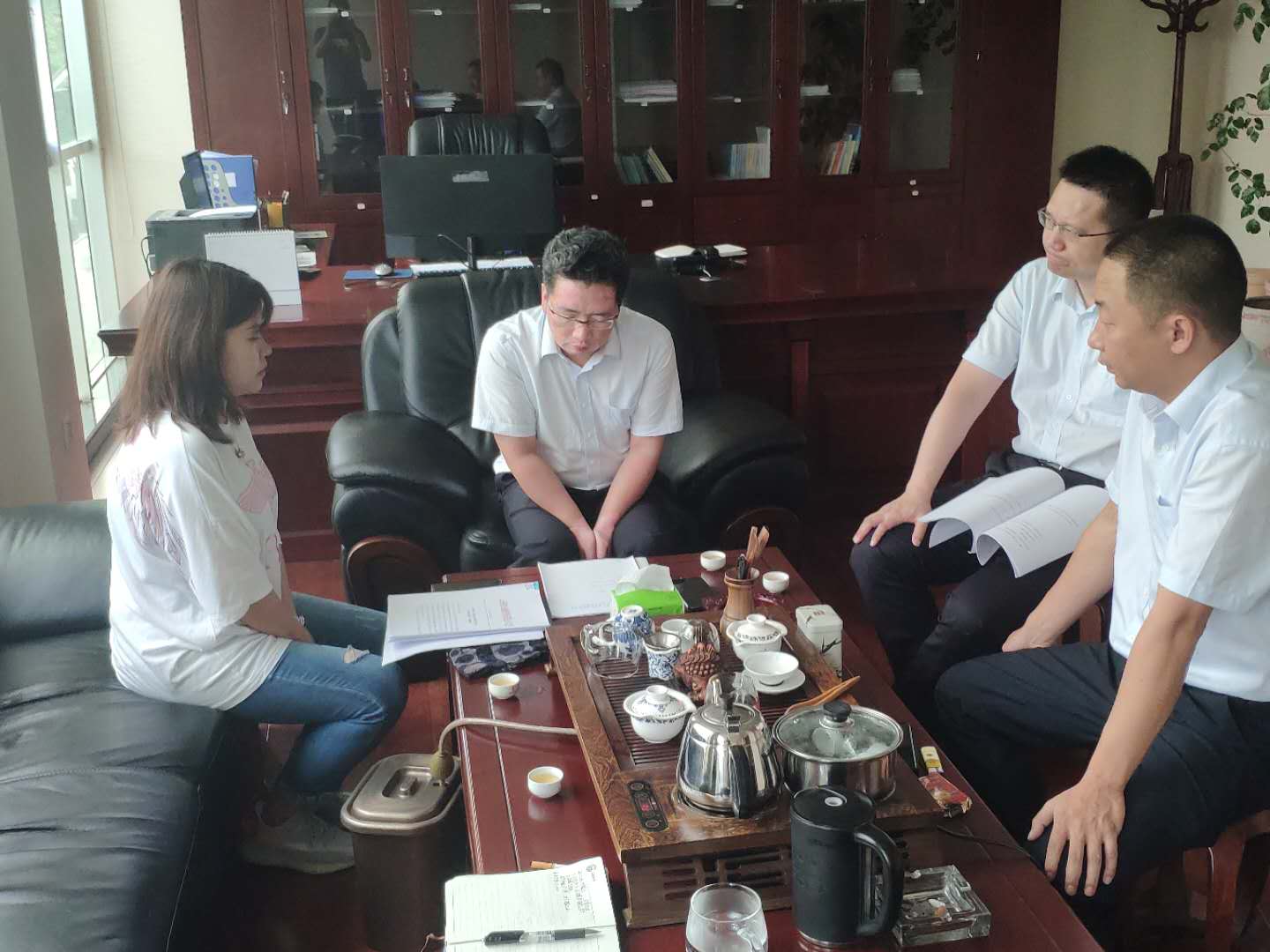 為擴(kuò)充業(yè)務(wù)類型,做大業(yè)務(wù)規(guī)模,2020年7月3日,臨滄辦事處業(yè)務(wù)主管張麗琴攜項(xiàng)目經(jīng)理?xiàng)钋飼郧巴R滄臨翔滬農(nóng)商村鎮(zhèn)銀行與董事長(zhǎng)陳瑞金、行長(zhǎng)楊愛(ài)飛、首席風(fēng)險(xiǎn)官嚴(yán)曉東、小微團(tuán)隊(duì)主任郭楊云就業(yè)務(wù)合作進(jìn)行座談。