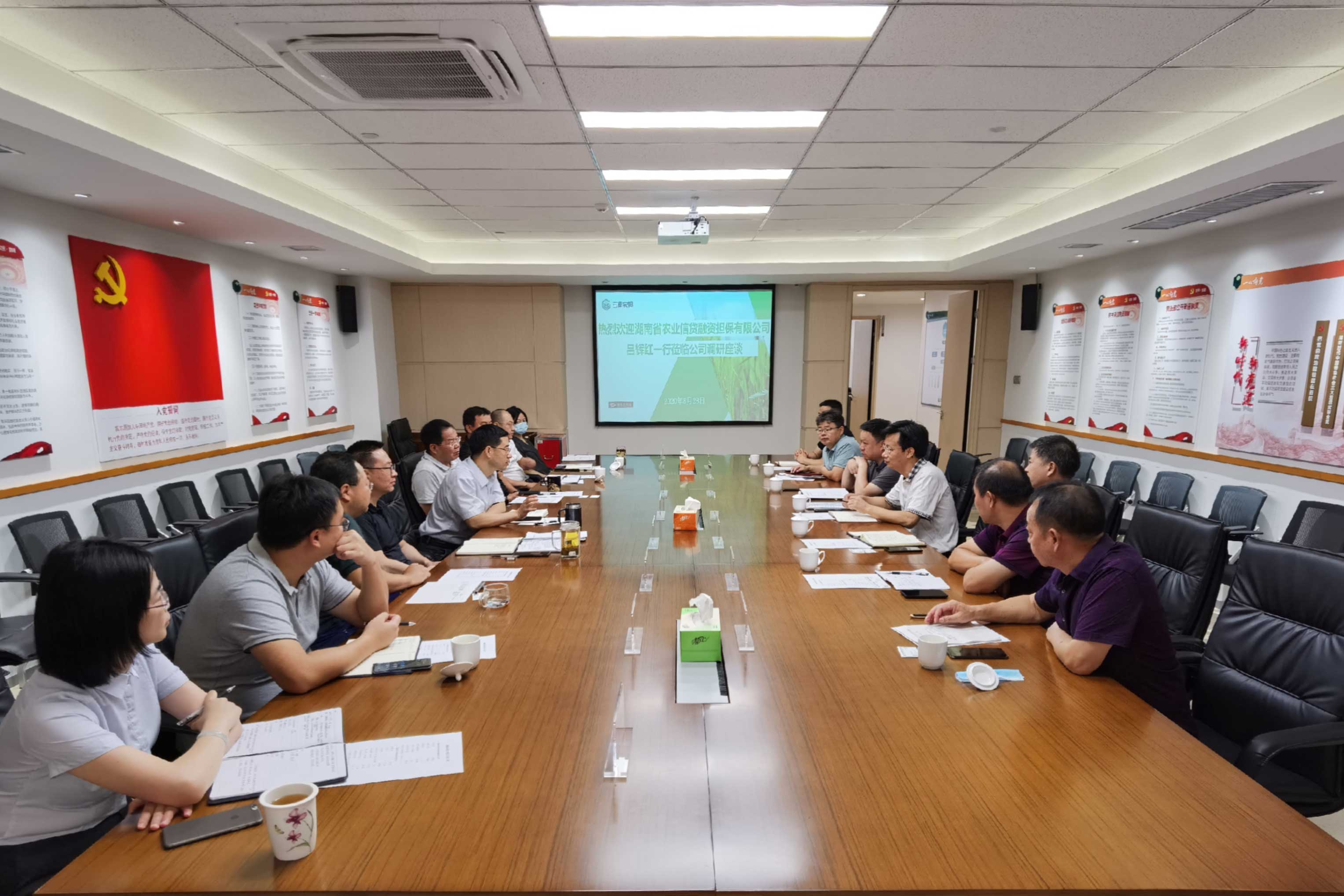 8月27日-8月28日,湖南省農(nóng)業(yè)信貸融資擔(dān)保有限公司(以下簡(jiǎn)稱湖南農(nóng)擔(dān))呂輝紅總經(jīng)理率隊(duì)赴云南農(nóng)擔(dān)調(diào)研交流。云南農(nóng)擔(dān)公司董事長(zhǎng)郭影、總經(jīng)理杜開波、副總經(jīng)理廖寅皓率農(nóng)擔(dān)業(yè)務(wù)一部、二部、風(fēng)控部、戰(zhàn)略部、計(jì)劃財(cái)務(wù)部、人力資源(黨群工作)部與湖南農(nóng)擔(dān)公司進(jìn)行了調(diào)研座談。