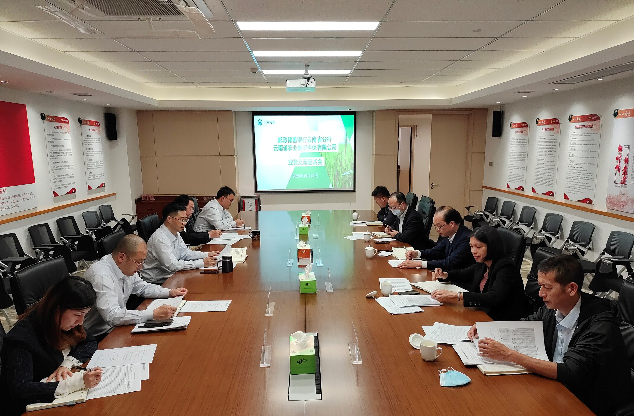 10月13日,云南省農(nóng)業(yè)融資擔(dān)保有限公司與郵政儲(chǔ)蓄銀行云南省分行召開業(yè)務(wù)交流座談會(huì)。郵儲(chǔ)銀行云南省分行孟浩副行長(zhǎng)、云南省農(nóng)擔(dān)公司郭影董事長(zhǎng)、杜開波總經(jīng)理出席了會(huì)議。郵儲(chǔ)銀行三農(nóng)金融部、小企業(yè)金融部,省農(nóng)擔(dān)公司風(fēng)險(xiǎn)控制(資產(chǎn)保全)部、農(nóng)擔(dān)二部、戰(zhàn)略發(fā)展部參加了會(huì)議。