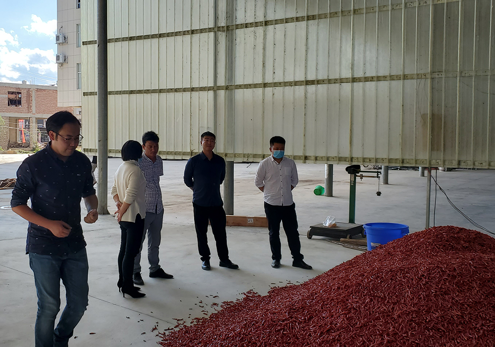 為深入了解硯山縣稼依鎮(zhèn)“辣椒產(chǎn)業(yè)”發(fā)展情況,全面推進鄉(xiāng)村振興,加快農(nóng)業(yè)農(nóng)村現(xiàn)代化,2021年11月4日,文山辦事處業(yè)務(wù)主管袁彬攜項目經(jīng)理王忠泉與中國郵政儲蓄銀行文山州分行副行長陳文奎、副行長李洪、小微企業(yè)總經(jīng)理黃繁兵及相關(guān)信貸人員深入硯山縣稼依鎮(zhèn)實地調(diào)研了解“辣椒產(chǎn)業(yè)”的發(fā)展趨勢,對部分辣椒貿(mào)易大戶及合作社進行貸款政策宣導。