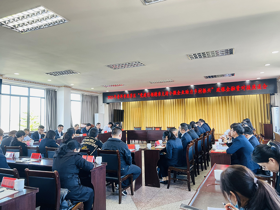 會(huì)議由思茅區(qū)委常委、區(qū)政府常務(wù)副區(qū)長周強(qiáng)同志主持。普洱市金融辦副主任陳勇同志、中國人民銀行普洱市中心支行副行長王立新同志、云南農(nóng)擔(dān)公司普洱辦事處負(fù)責(zé)同志、區(qū)委組織部、9家金融機(jī)構(gòu)及企業(yè)負(fù)責(zé)人和各部門負(fù)責(zé)同志參加會(huì)議。
