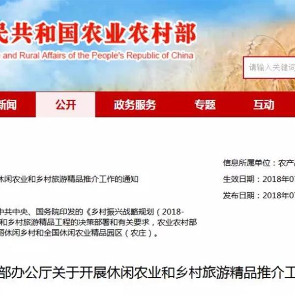 為落實(shí)今年中央一號文件和中共中央、國務(wù)院印發(fā)的《鄉(xiāng)村振興戰(zhàn)略規(guī)劃(2018-2022)》關(guān)于實(shí)施休閑農(nóng)業(yè)和鄉(xiāng)村旅游精品工程的決策部署和有關(guān)要求,農(nóng)業(yè)農(nóng)村部決定向社會(huì)推介一批中國美麗休閑鄉(xiāng)村和全國休閑農(nóng)業(yè)精品園區(qū)(農(nóng)莊)。現(xiàn)將有關(guān)事項(xiàng)通知如下。